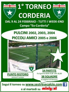 Si è concluso con un grande successo per tutti il 1° TORNEO CORDERIA organizzato dalla Scuola Calcio della Sestrese. La manifestazione, dedicate alle leve dal 2002 al 2006, si è svolta in tre fine settimana che hanno regalato gol, emozioni e tanto pubblico sul campo della Corderia.